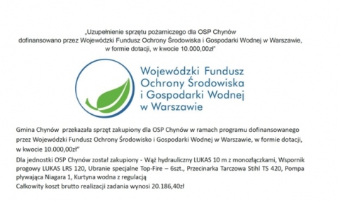Uzupełnienie sprzętu pożarniczego dla OSP Chynów.